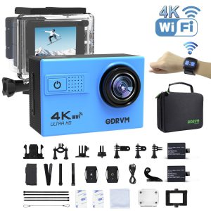 Dans l’eau, on ne veut rien rater. C’est pourquoi, en vous armant d’un appareil photo plongée comme celui-ci, vous êtes sûr et certain de garder tous vos souvenirs « dans la boîte ». Cette caméra étanche 4K de la marque ODVRM dispose d’un grand angle de couverture compris entre 70° et 170°. De ce fait, ne vous retenez surtout pas de prendre quelques images en mode panorama. Tous ses accessoires vous sont livrés, du trépied au caisson en passant par la housse de transport. Il est également intéressant de ressortir que cette caméra dispose de 2 batteries rechargeables de 1050 mAh chacune, pouvant résister 40 minutes au plus. C’est une autonomie qui peut être améliorée pour être évaluée en heures. Un gros avantage vous attend également avec cet appareil photo : sa télécommande 2.4G. Assimilable à une montre, elle se porte au poignet et affiche également une grande étanchéité jusqu’à 15 mètres. Le pilotage de cet appareil photo ne sera donc pas compliqué, car le fabricant vous a amplement facilité la tâche.