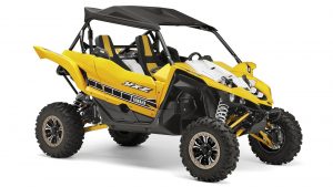 Au style agressif et unique, le Yamaha YXZ 1000R est homologué deux places. C’est le premier SSV équipé d’une boite séquentielle 5 rapports avec marche arrière, ce qui rend ses performances exceptionnelles. Il est équipé d’un moteur quatre temps Yamaha trois cylindres de 998 cm3 à double arbres à came en tête offrant puissance et couple exceptionnelles. L’habitacle est très bien fait, les sièges très confortables pour que vous ne puissiez pas vous fatiguer lors de votre ballade. Sa partie cycle est exceptionnelle, pour plus de plaisir et une sécurité à 100%. La direction assistée est présente, tout comme le blocage de différentiel avant. La marche arrière est accessible par une commande au volant, ceci pour empêcher la sélection accidentelle de la marche arrière. La fumée est évacuée délicatement grâce à l’échappement compact 3 en 1 avec silencieux central en acier inoxydable.