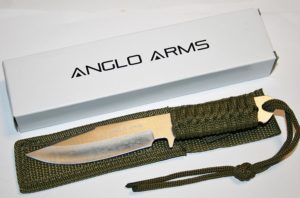 Ce couteau au design militaire peut assurer votre survie en plusieurs circonstances. Il est facile à ranger, car il est livré avec dans un sac photo en nylon qui s’accorde parfaitement avec le décor du manche. Par ailleurs, il a une petite scie à l’avant de la lame. Comprenez donc qu’il vous sera utile non seulement pour couper et découper, mais aussi pour effectuer un sciage de petite envergure. En plus, sa lame en acier 420 est très résistante et permet de venir à bout de toutes les matières. Sachez que ce couteau Anglo Arms est d’une longueur totale de 191 mm et d’un poids de 74 grammes. C’est un accessoire hyper pratique, mais qui a un petit bémol. Le hic de ce couteau, c’est son manche Paracord. Il est très petit et du coup ne facilite vraiment pas sa prise en main.