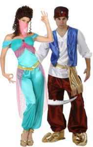 Vous êtes un couple et à l’occasion d’un carnaval vous souhaitez vous déguiser en Aladin et Jasmine ? Nous avons déniché la tenue parfaite pour réalise votre souhait. En fait, c’est lot de 2 déguisements orientaux qui sont structurés comme suit. Pour la femme, vous avez un voile rose et or pour le visage, un haut et un pantalon bleus avec voiles roses accrochés à la taille. En ce qui concerne l’homme, vous avez un chapeau, une tunique, une ceinture, un pantalon et une paire de sur-chaussures en or. Chaque costume est de très bonne qualité. Seulement, pour l’achat des deux, vous devrez débourser une belle et ronde somme. Mais ce ne sera pas à regret, car l’effet escompté sera atteint à coup sûr.