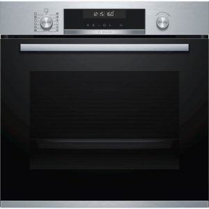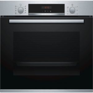 Avec des programmes intégrés qui garantissent la réussite de vos plats sélectionnés, rien de mieux que le four HBA573BRO. Il est en inox et les résultats de cuisson sont juste parfaits. Simple et souple d’utilisation, la fonction pyrolyse peut être réglée sur trois niveaux différents, selon le niveau de salissure du four (75, 90 ou 120 minutes). Sa cavité possède des gradins amovibles offrant cinq modes de cuissons différents. Son volume intérieur est énoncé à 71 Litres et il est fourni avec une seule grille et un plat profond. La porte battante dispose d’un système d’amortissement de l’ouverture pour éviter tout choc possible. Vous devez sélectionner systématiquement le niveau de température lors du choix du mode de vos cuissons.