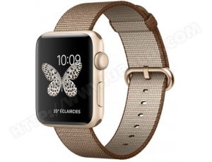 La montre connectée Apple Watch 2 est un très joli gadget pour une utilisation quotidienne. Ce modèle de montre Eclock Apple est fait d’une matière en Nylon et a une couleur caramel. La montre a un poids de 0.034 kg et comprend un cadran d’une dimension de 42 mm. Son boîtier en aluminium a une couleur en or, et elle possède un verre de type Ion-X. Ce gadget convient aux tours de poignet de 145 à 215 mm. Il est équipé d’un écran Retina avec Force Touch. Vous y trouverez également, un haut-parleur et un microphone. C’est une montre précise qui propose des notifications importantes pour les utilisateurs (Cardiofréquencemètre, accéléromètre et gyroscope). Elle combine les fonctionnalités d’un moniteur d’activité quotidienne à celles d’une montre de sport ultraperformante. Cette montre est compatible avec les Smartphone iPhone 5. Elle fonctionne par Bluetooth 4.0 et Wi-Fi.
