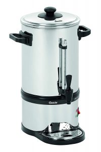 Ce percolateur Hendi est très abordable en matière de prix. Alors, si vous n’avez pas un gros budget, mais que vous voulez boire du bon café en tout temps, vous pouvez vous le procurer. Il fonctionne sous l’action d’un puissant moteur de 1500 watts et sa cuve a une paroi simple. C’est clair que ce n’est pas de la haute gamme, mais sa qualité est appréciable dans une certaine mesure. Disposant d’une garantie d’un an, ce percolateur peut être fiable à long terme. En outre, il a une cuve de 6 litres qui peut produire une certaine quantité de café. C’est un équipement qui ne prend pas beaucoup de place, car il fait seulement 46.5 cm de haut et 31 cm de diamètre. Son robinet de service est idéal pour se servir du café en toute propreté. C’est certain, son utilisation est très simple.