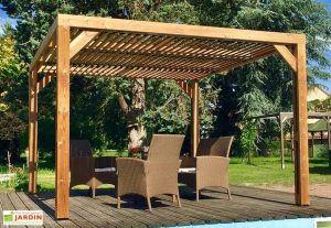 Cette pergola bioclimatique bois Habrita est faite en bois solide et elle bénéficie d’un traitement haute température qui la protège contre toutes les intempéries. En effet, c’est un modèle qui est protégé efficacement contre l’humidité, la moisissure et contre toutes attaques d’insectes de toute sorte. Avec cette pergola vous avez la garantie d’une utilisation à long terme avec une haute protection contre la chaleur au milieu de la maison. Elle dispose de vantelles orientables en bois que vous pouvez déplacer à tout moment à votre guise pour vous protéger du soleil ou le laisser pénétrer sous la pergola selon vos envies. Sa structure est assez solide et robuste grâce à ses 4 poteaux de 12 x 12 cm qui la soutiennent sur le sol et lui offre une grande stabilité. Même un vent fort ne sera pas en mesure de la déstabiliser de sa surface de fixation.