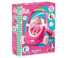 Cela aurait encore été acceptable si cette poussette pouvait correspondre à n’importe quelle poupée. Là encore, c’est une fausse note ! L’espace prévu pour accueillir le passager de bébé est taillé à un type spécifique de poupée. Seuls les poupons de la même marque que la poussette (Minikiss) rentrent parfaitement dans cette dernière, ce qui oblige les parents à les acheter, même si leur enfant a déjà plusieurs poupées de marques différentes. Cette poussette engendre donc des dépenses supplémentaires.