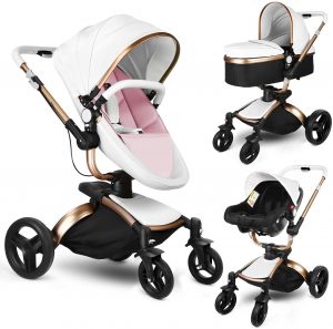 Sur le marché, il y a poussette et poussette. Si vous cherchez celle qui sera un long séjour à vos côtés, orientez votre choix sur la poussette Amzdeal 3 en 1. Elle est capable de transporter un bébé ayant jusqu’à 20 kilogrammes ! N’est-ce pas génial ça ? Lors de sa conception, le fabricant a mis tout en place afin tout parent puisse trouver son compte. Sa structure est faite en cuir de haute qualité pour offrir un design pratique et adouci. Cette poussette dispose d’un cosy et d’une nacelle. Concernant le cosy, il se fixe sur le châssis de la poussette et sert également de siège-auto permettant de déplacer bébé de la poussette à la voiture sans toutefois le réveiller et vice-versa. Quant à la nacelle, elle propose un confort optimal à bébé et est facile à manipuler grâce à sa rotation de 360°.