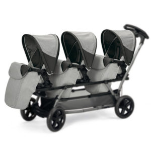 Si vous voulez absolument une poussette triple anthracite, voici pour vous la poussette Childwheels. Elle est pratique pour vous permettre de rester mobile avec vos trois enfants. Sa configuration est particulière, car ici, deux enfants sont assis à l’arrière et un autre est devant. Cette configuration rend le gabarit moins large. En matière d’ergonomie, vous êtes donc déjà rassuré. Sous les sièges de la poussette triple Childwheels se trouve un grand panier à provisions. À l’intérieur, vous pourrez embarquez les affaires nécessaires des trois enfants comme les couches, les biberons et les lingettes. En outre, les larges roues à roulement à billes favorisent un déplacement facile malgré le poids des enfants et leurs affaires. Cependant, sa limite majeure est d’ordre pécuniaire, car son prix est très élevé.