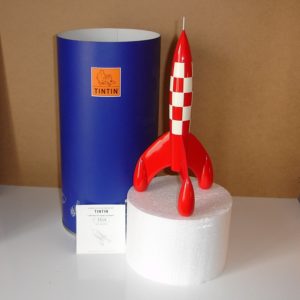 Commercialisée tant dans les espaces marchands que sur les plateformes de vente en ligne, la fusée lunaire de Moulinsart a conquis le cœur de pratiquement tous les tintinophiles. Mesurant seulement 17 cm de la cime à la base, cette réplique fusée Tintin ne prendra pas beaucoup de place au chevet du lit de votre enfant, ou sur sa table de chambre.