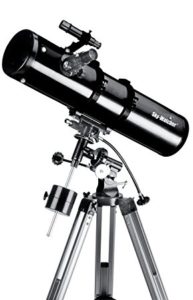 Ce dispositif que vous voyez à l’instant a un rapport d’ouverture F/6.9 qui offre une très bonne visibilité des nébuleuses, des amas d’étoiles et les galaxies d’étoiles. Le miroir de sa lunette a un diamètre de 130 mm et une focale de 900 mm. Dans le même sillage, il est livré avec deux oculaires. L’oculaire coulant de 31.75 cm et l’autre oculaire super de 25 mm et 10 mm. De même, sa lentille de Barlow achromatique vous permet d’avoir une image 2 fois plus lumineuses qu’à l’œil nu, de quoi vous régaler les yeux ! C’est vous qui choisissez la taille à laquelle vous voulez admirer les astres. En effet, cette lentille dispose d’un grossissement réglable. Vous avez ainsi la possibilité de les regarder en 36x, 72x, 90x et 180x.