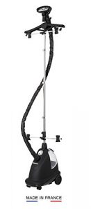 Besoin d’un défroisseur vapeur vertical domestique ? Le Steamone H8 est l’appareil qu’il vous faut. Il est doté d’un design sobre avec un revêtement noir brillant. Sans planche, il permet de défroisser tous les textiles sans les brûler, ni les lustrer. Il est muni d’un cintre à pince pour étaler le vêtement pour un repassage optimal. De plus, il est prêt à l’usage au bout d’une minute. Il est facile à ranger grâce à son format compact, et possède une tige télescopique assez discrète et quatre roues pour son déplacement. Que ce soit la broderie, la laine, la mousseline, le lin, le coton ou la soie, cet appareil les défroisse parfaitement. Par ailleurs, il est doté d’une valve d’évacuation calcaire qui facilite son nettoyage et favorise sa longévité. Cet appareil est vraiment muni d’une performance optimale qui saura vous plaire.