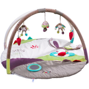 Le tapis d’éveil Ludi est de forme ronde. Rien que ce détail montre déjà combien il est très peu encombrant. C’est le lieu idéal sur lequel bébé pourra s’amuser sans courir aucun risque. Il se compose de 5 accessoires peluches détachables et d’un tapis en coton et velours imprimé. Bébé pourra jouer avec son pouêt-pouêt, son hochet, son miroir et son papier bruissant. C’est un équipement douillet et confortable qui a plusieurs couleurs vives et des formes amusantes qui n’ont pour seul et unique but que d’éveiller votre enfant. Ce qui déçoit en revanche avec cet accessoire, c’est qu’il coûte assez cher.