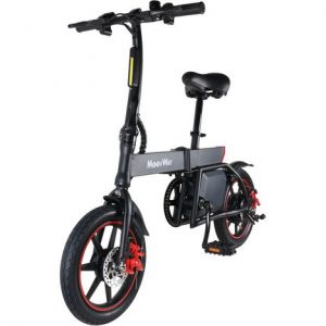 C’est difficile de ne pas craquer pour ce vélo électrique pliant Moovway B20 qui fonctionne avec une puissance élevée de 350 watts et qui vous permet d’atteindre jusqu’à 25 km/h de vitesse. Il s’agit d’un vélo très rapide et sécurisé par un double frein à disque placé à l’avant et à l’arrière du vélo. Avec ces freins vous avez une très bonne distance de freinage et vous pouvez facilement éviter un choc pendant la circulation. Toujours pour votre sécurité ce vélo est aussi équipé d’un double garde boue contrairement aux autres vélos électriques pliant qui n’en possède qu’un seul à l’arrière. Ici, vous avez un garde boue avant et arrière pour éviter de salir vos vêtements en fonction des saisons. Pour la circulation dans la nuit ce vélo est équipé d’une sonnette, d’un éclairage et d’un feu stop pour vous permettre d’être visible sur la chaussée par les autres conducteurs.